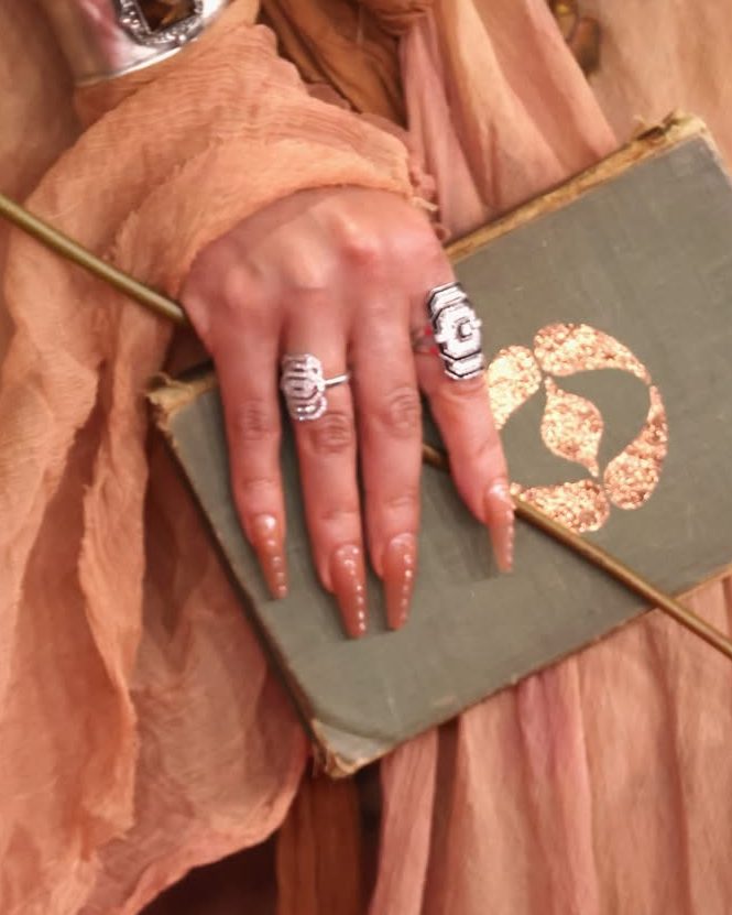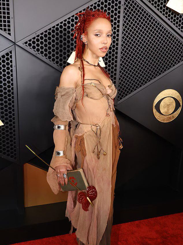 FKA Twigs มากับเล็บทรงยาวปลายเหลี่ยมสีนู้ดแต่งลายนูน ที่ให้ความรู้สึกแปลกใหม่เข้ากับชุดของเธอได้อย่างดี