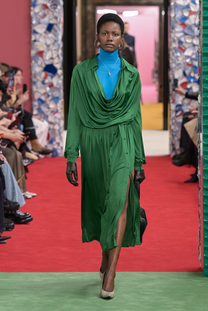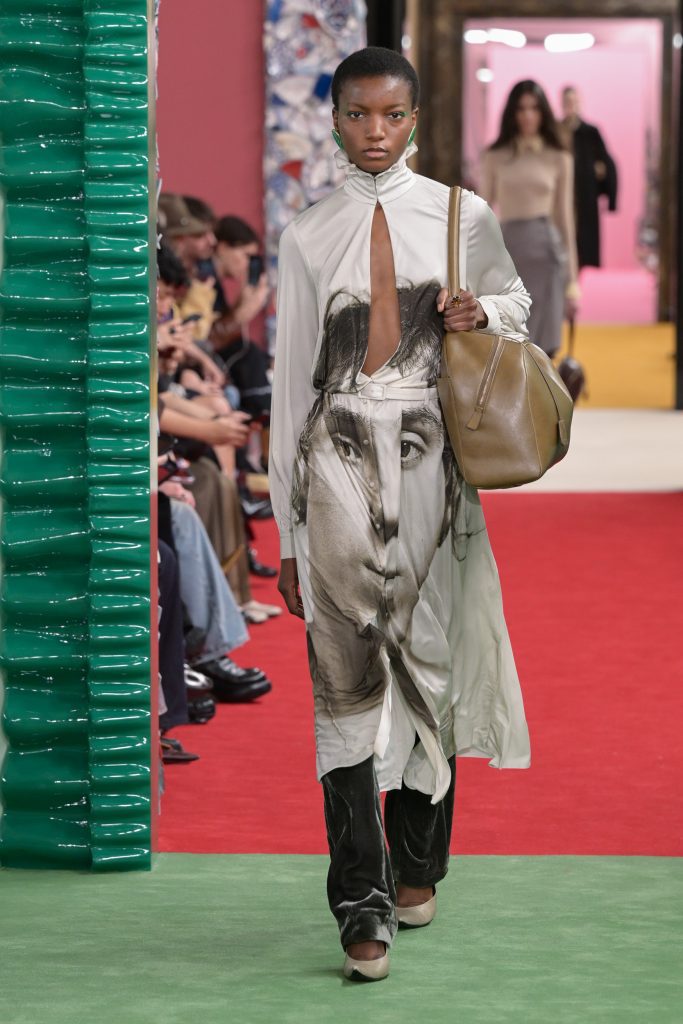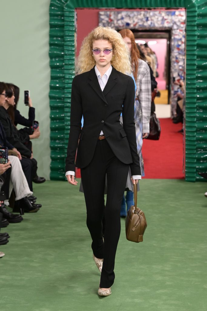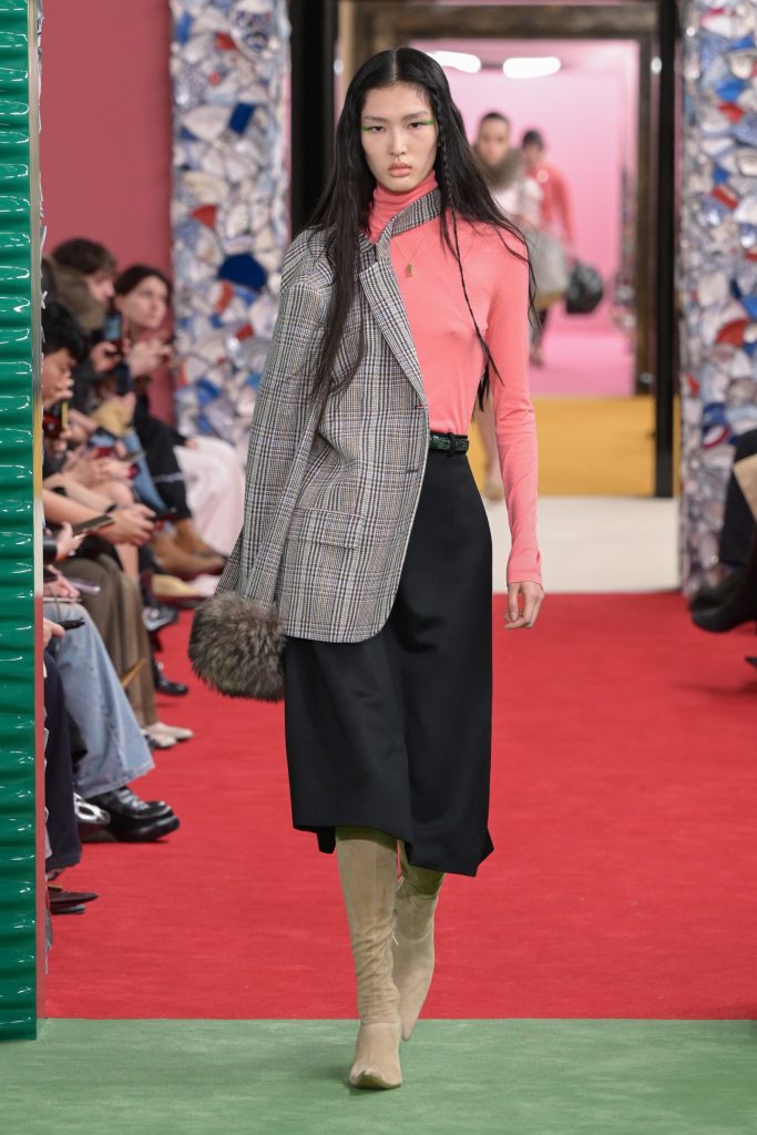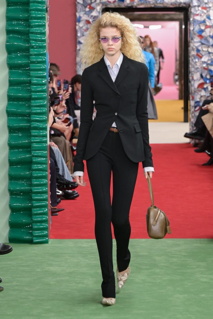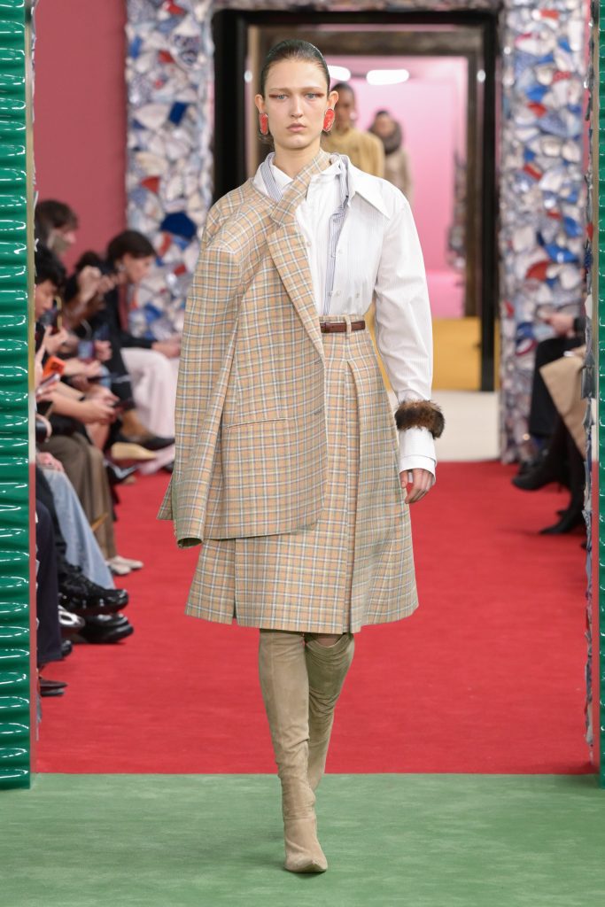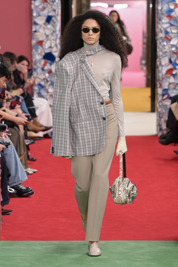 ตั้งแต่ลุคแรกที่ปรากฎเราจะเห็นซิลูเอ็ตที่ชัดเจน อย่างสูทเรียบที่มีลักษณะโอบรัดช่วงเอว ในสีโทนเรียบอย่างสีดพ แต่หลากหลายลุคยังมีการสอดแทรกไอคอนิกอย่างการเล่นกับลายตาราง ซ่อนอยู่บนเสื้อเชิ้ตและกระโปรง นอกจากนี้เองยังมีการใช้เครื่องหนัง และเดนิมมาแมตช์ให้ลุคดูเท่มากขึ้นในแบบเฟมินีนที่ร่วมสมัย หรือกระโปรงพิมพ์ลาย ไปจนถึงการดีไซน์ให้เสื้อผ้ามีความสะดุดตามากยิ่งขึ้น อย่างสูทโอเวอร์ไซซ์ที่ใส่เพียงครึ่งเดียวและอีกครึ่งเป็นเชิ้ตแต่งลาย สะท้อนถึงความขี้เล่นตามแบบฉบับจุดกำเนิดของแบรนด์ที่เริ่มต้นมาจากกลุ่มคนที่สตอล์กโฮมที่รักและหลงใหลในงานศิลปะได้เป็นอย่างดี แม้จะใช้โทนสีเรียบในชิ้นงานบนรันเวย์แต่ยังคงซ่อนกิมมิกเล็กน้อยอย่างการแมตช์ลุคต่างๆ เข้ากับไอเท็มอย่างรองเท้าที่มีสีสันฉูดฉาดและกระเป๋าสีสดใสอย่างฟ้า หรือเสื้อตัวในสีชมพู เขียว ฟ้าสด