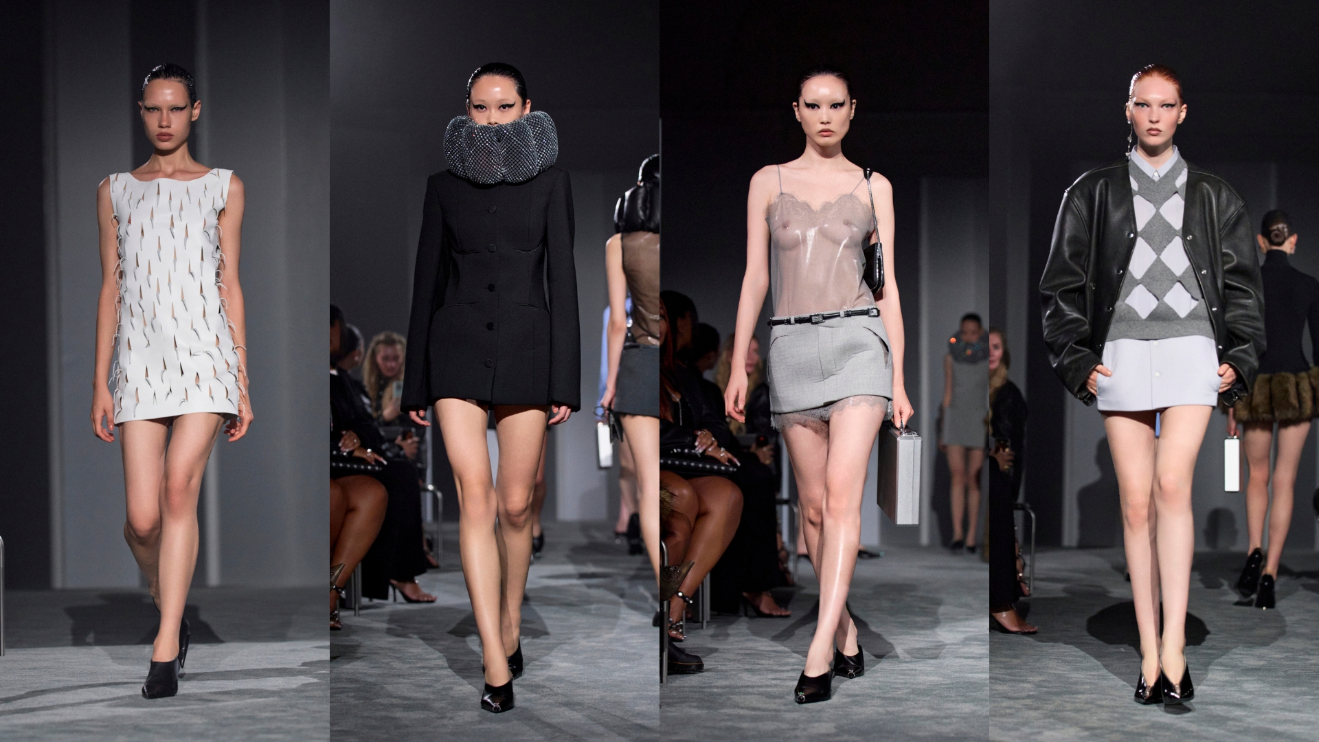 Alexander Wang: ไม่ได้หมายถึงความทรงพลังในแบบดั้งเดิม แต่มันคือเกราะที่ถูกออกแบบด้วยความตั้งใจ ผมผสมผสานเรื่องของโครงสร้างและความอ่อนโยนเข้าด้วยกัน แจ็กเก็ตถูกดีไชน์ให้สั้นขึ้นเผยผิวกายอย่างมีชั้นเชิง ผ้าทวีตถูกเปลี่ยนให้มีผิวสัมผัสแบบเมทัลลิกเพื่อให้ดูเท่และลึกลับขึ้น การผสานสองขั้วตรงข้ามนี่แหละที่ให้ความรู้สึกทันสมัย