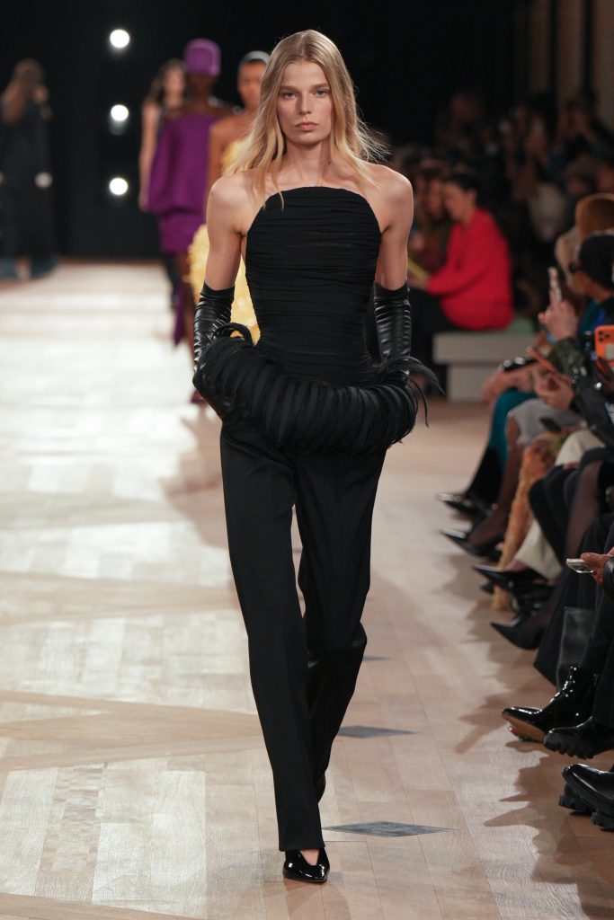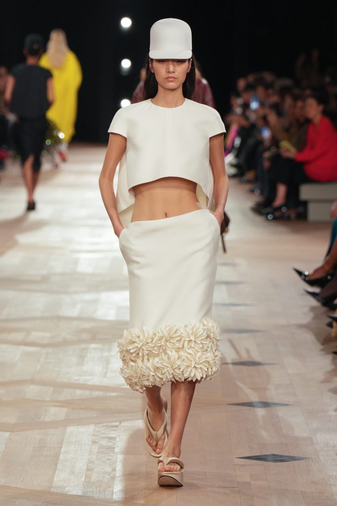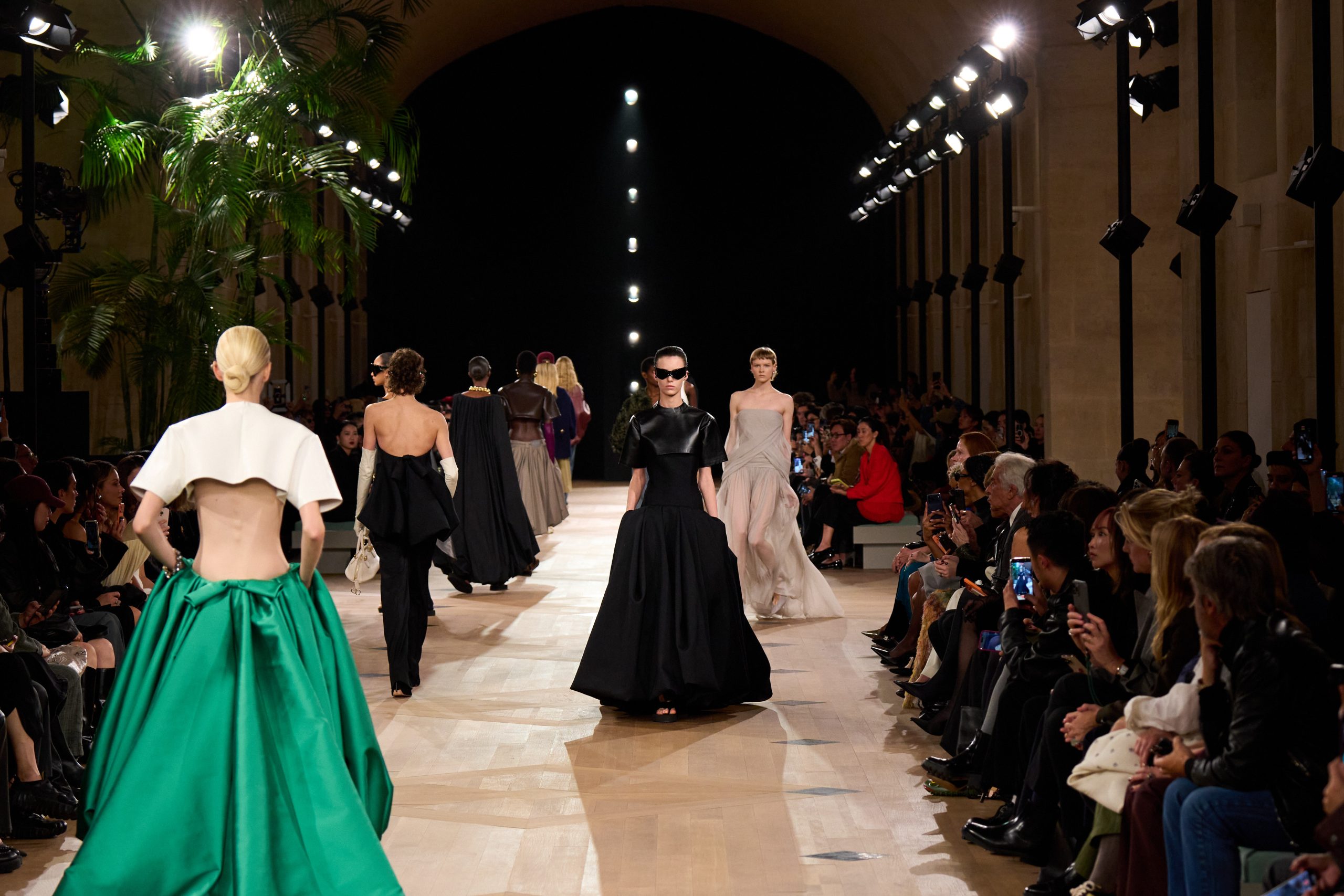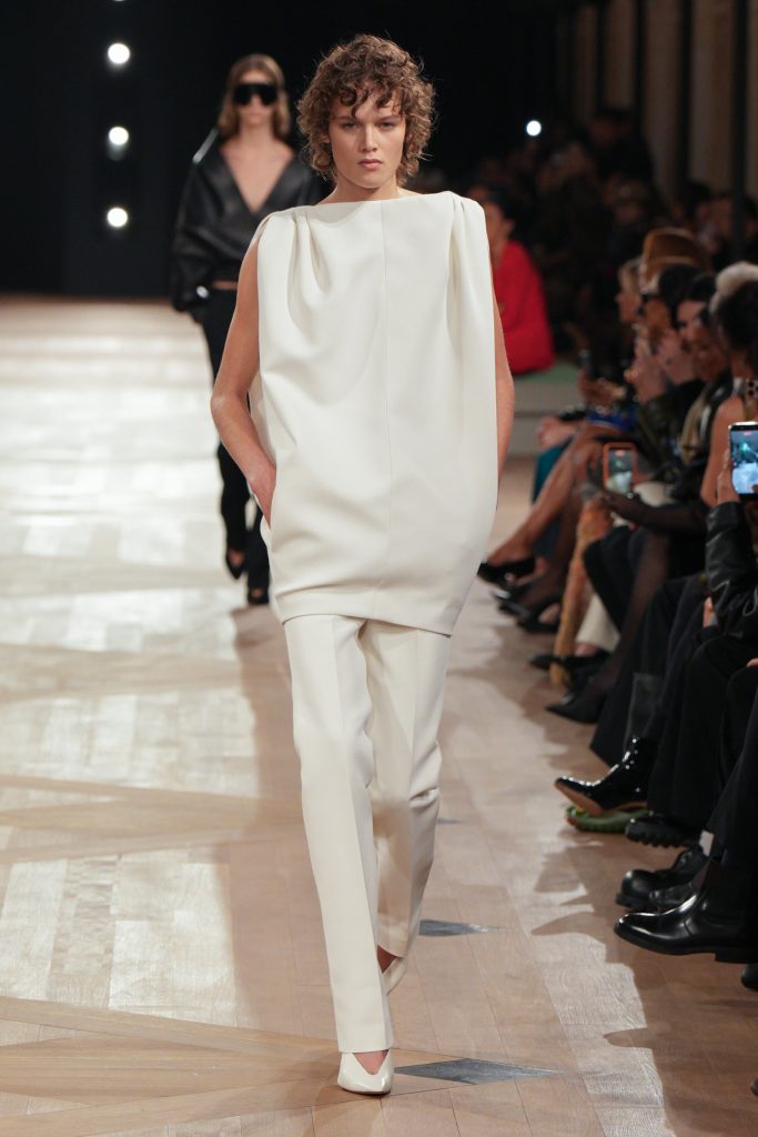 ในโชว์ที่จัดขึ้น ณ Le Bourget Hall กรุงปารีส ท่ามกลางแสงสลัวและเสียงหัวใจเต้นจังหวะช้าๆ เขาใช้เสื้อผ้าเป็นภาษาสื่อถึง ‘ความเป็นมนุษย์’ ผ่านเส้นสายที่เฉียบแต่ไม่เย็นชา โครงชุดคมชัดแบบ Balenciaga ยังคงอยู่ ไม่ว่าจะเป็นโค้ตโอเวอร์ไซซ์ ไหล่ตั้งทรงสถาปัตยกรรม หรือกางเกงทรงตรงที่ขับความมั่นใจ แต่ทั้งหมดถูกปรับโทนให้ละเมียดขึ้นด้วยวัสดุอย่างไหมซาติน ออร์แกนซา และคอตตอนชีฟองที่ให้สัมผัสเบาราวอากาศ