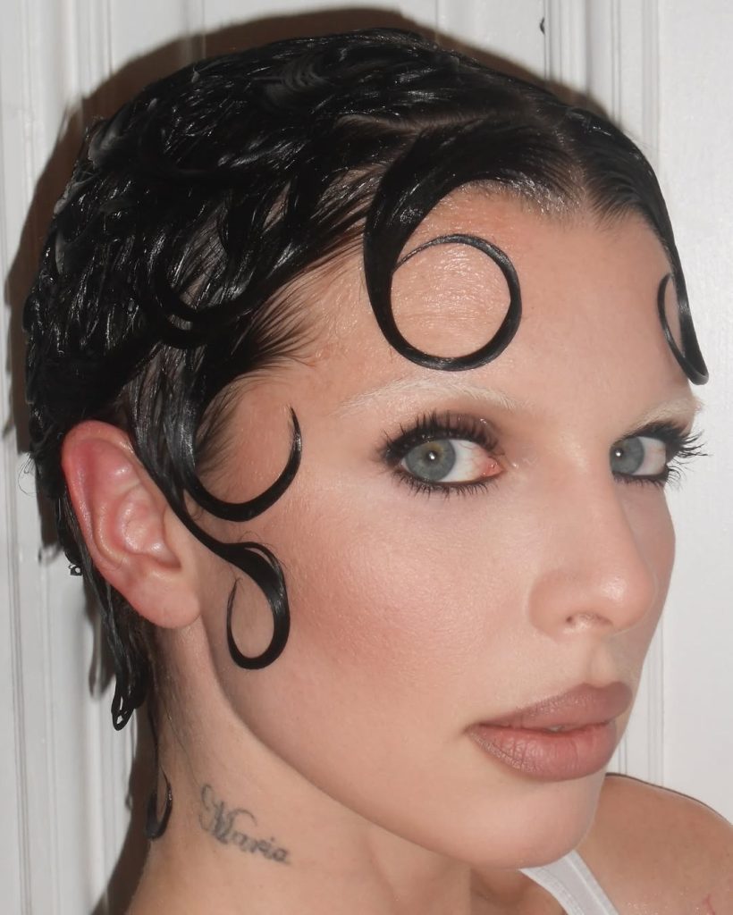 ด้าน Kylie Jenner ก็เคยสร้างลุคคิ้วฟอกในแคมเปญของ Khy คอลเล็กชันที่คอลลาบอเรชั่นกับ Dilara Findikoglu ซึ่งตอกย้ำภาพลักษณ์ที่ล้ำสมัยและแฟชั่นสุดขั้วของแบรนด์ได้อย่างดี ขณะที่ Julia Fox เลือกจะทำให้คิ้วฟอกกลายเป็นหนึ่งในซิกเนเจอร์ที่สะท้อนตัวตนความเป็นเธอ ด้าน Kim Kardashian เองก็เคยสร้างกระแสด้วยลุคคิ้วฟอกในแคมเปญโปรโมตคอลเลกชั่ตของ Skims ที่ทำให้ผู้คนพูดถึงอย่างกว้างขวาง