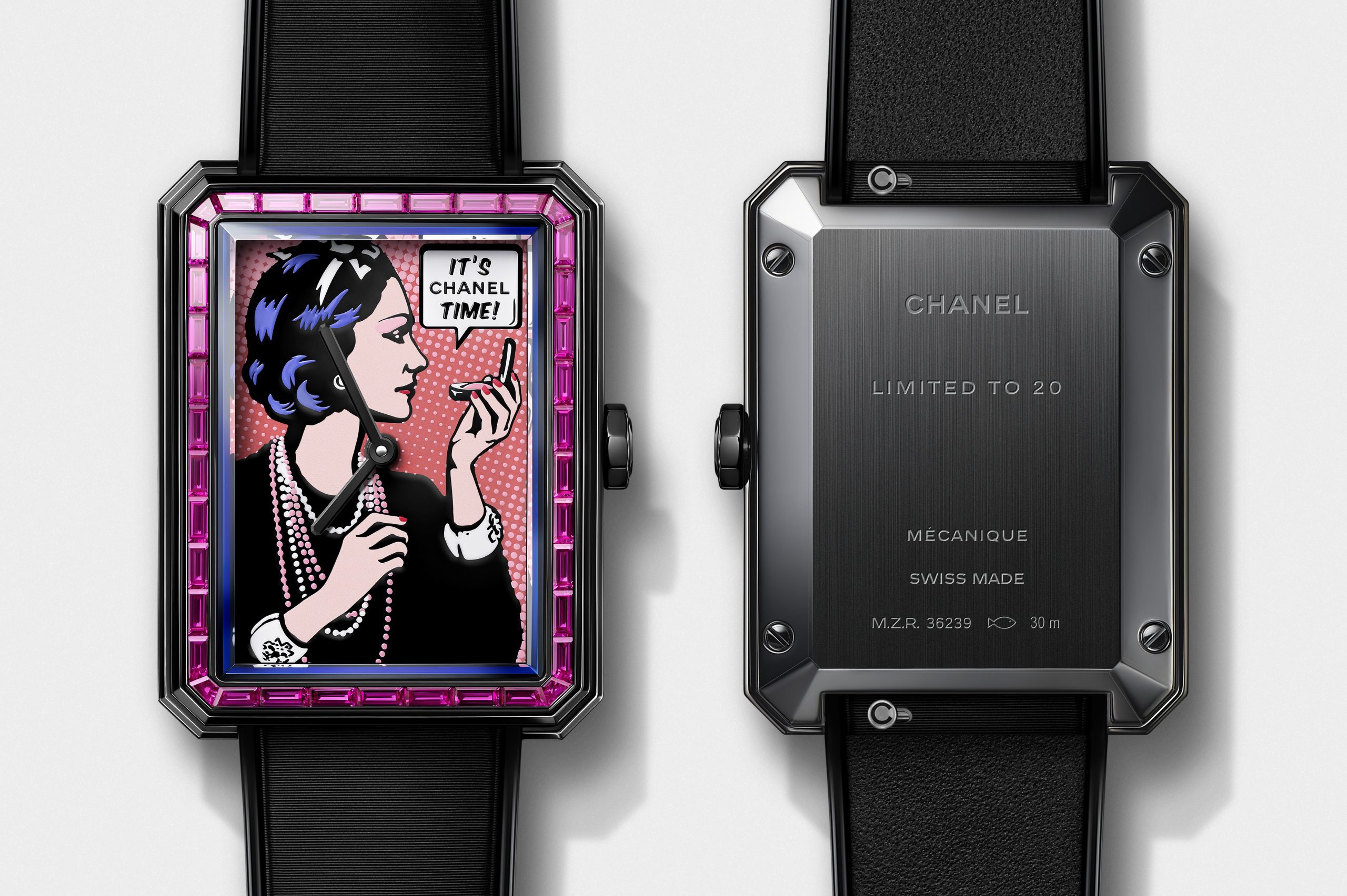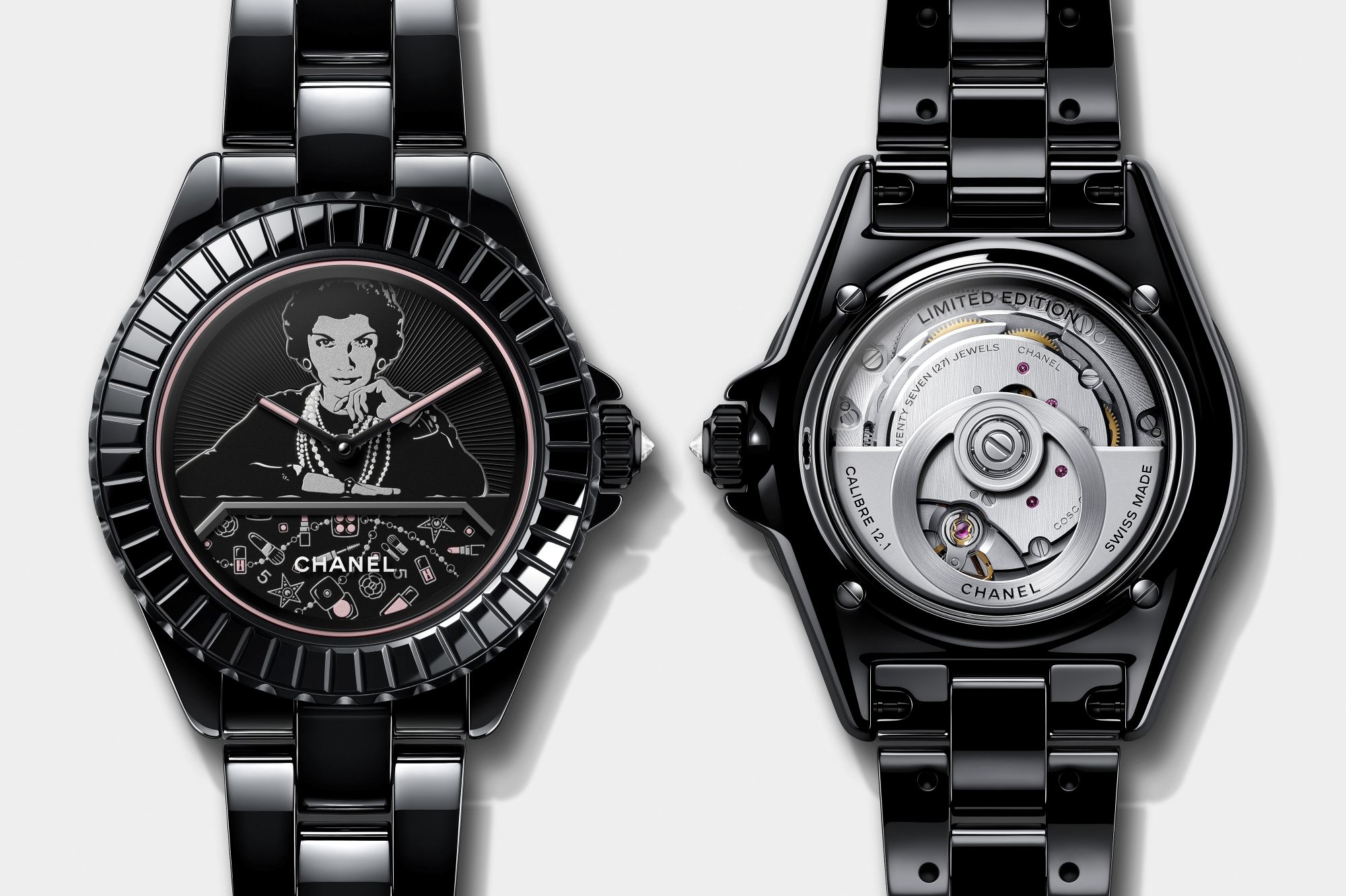 ถ้าหากให้เลือกหนึ่งในผลงานในดวงใจ ส่วนตัวแล้วขอยกให้กับนาฬิกาข้อมือรุ่น Mademoisselle J12 Blush Caliber 12.1 38 MM ที่นับเป็นความครบเครื่องและสื่อถึงแรงบันดาลใจของคอลเล็กชั่นพิเศษนี้ได้อย่างดี ด้วยหน้าปัดที่ตกแต่งด้วยภาพของกาเบรียล ชาเนล แบบขาวดำ กำลังหันหน้ามายังโต๊ะเครื่องแป้งและรายล้อมไปด้วยเครื่องสำอางชิ้นสำคัญ อย่าง อายแชโดว์ แป้ง ลิปสติก ถ่ายทอดด้วยเทคนิคการลอกลายโทนสีเงินและชมพูอ่อน ทั้งหมดนี้ยังหมุนรอบหน้าปัดด้วยดิสก์หมุนครบรอบใน 5 นาทีได้ด้วย เป็นงานศิลป์ที่ทรงคุณค่าและเป็นตัวแทนการสร้างสรรค์นาฬิกาของเฮาส์ได้อย่างดี