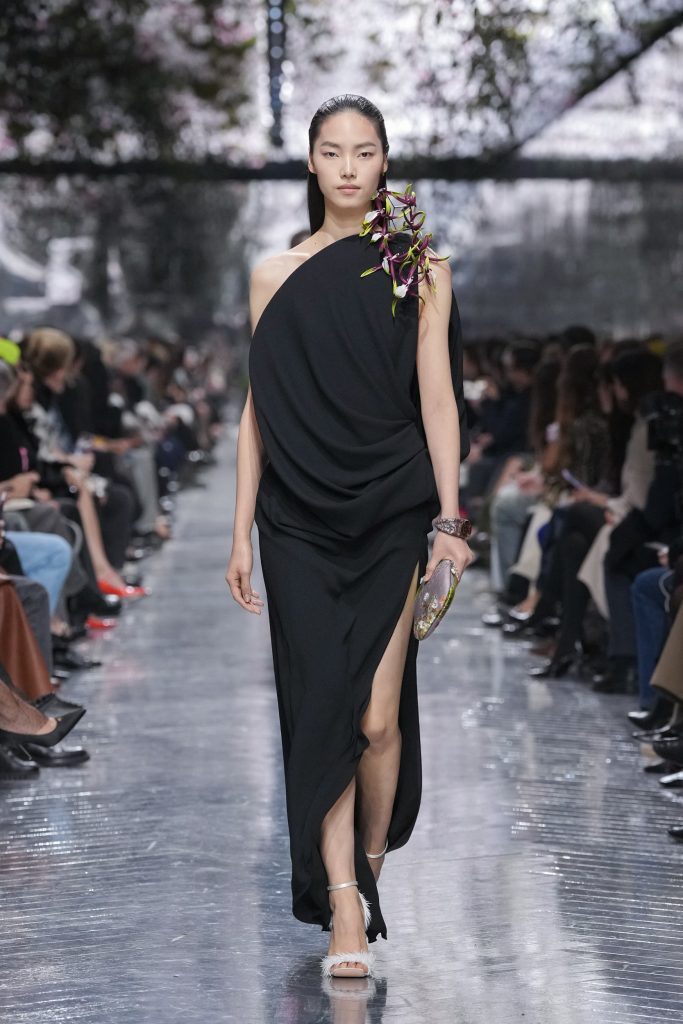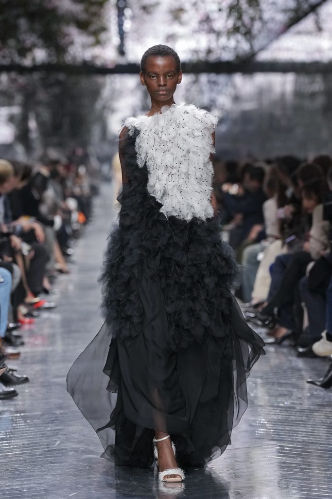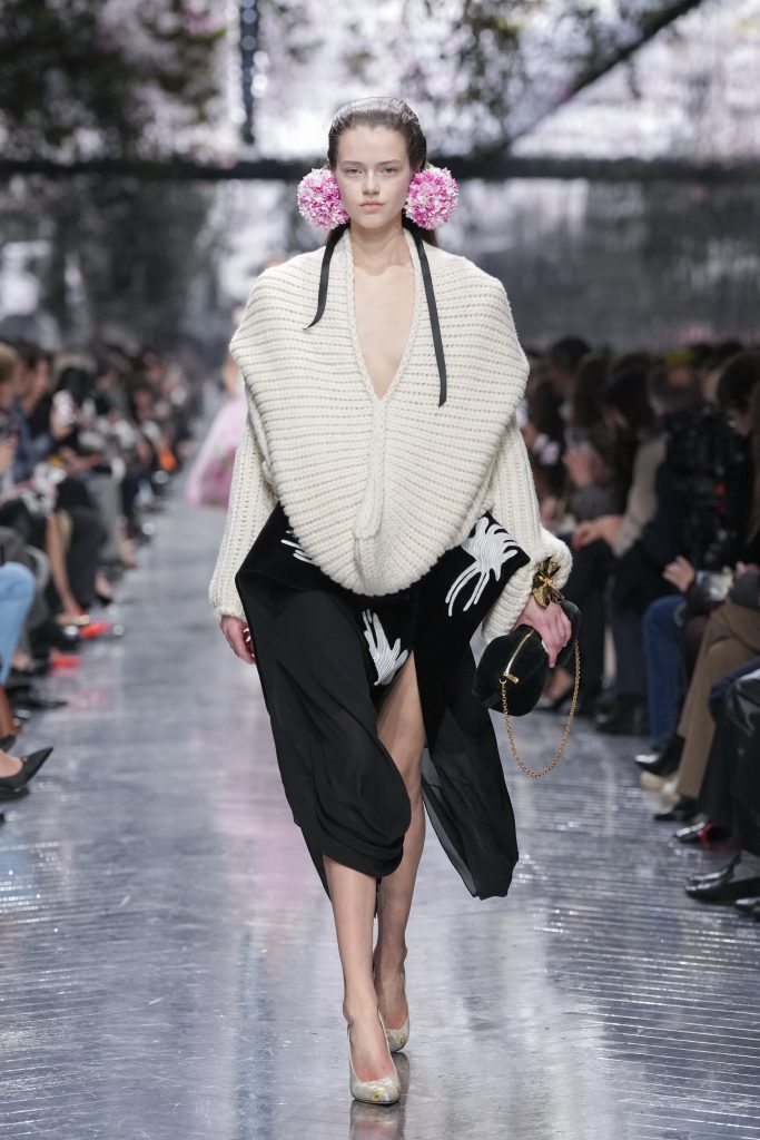 เมื่อดนตรีบรรเลงโชว์อย่าง Vivaldi ได้เริ่มต้นขึ้น ก็ได้ปรากฎลุคแรกด้วยเดรสบอลลูนสีดำสนิทที่จับจีบราวกับกลีบดอกไม้ และผูกชายกระโปรงด้วยซิกเนเจอร์อย่างโบว์ นอกจากนี้เองในโชว์เดบิวต์ของ Jonathan Anderson นี้ยังมีการเลือกใช้ผ้าวูล ขนแกะ มาทอมือจนกลายเป็นเสื้อไหมพรมในโทนสีสว่าง หรือการเล่นกับผ้าไหมจับคู่กับขนนก หรือลายกระโปรง จับเดรป สร้างเลเยอร์ของชุดต่างๆ ให้เหมือนกลีบดอกไม้และเกสรหลากหลายสีสัน ทั้งสีเด่นอย่างขาว ดำ ตัดกับดอกไม้สีสดที่ประดับบนบ่าอย่างสีม่วงสด เขียว ชมพู ส้ม รวมถึงการซ่อนดอกไม้ไว้บนรายละเอียดอื่นๆ ทั้งหมดเหล่านี้ Jonathan Anderson ได้เลือกหยิบจับคู่สีที่ยังคงให้ความสำคัญกับคนรุ่นใหม่ ทันสมัยแต่ยังอ่อนโยน และในบางลุคก็ได้แมตช์กับต่างหูดอกไม้ที่ชวนนึกถึงงานแต่งงานของ John Gaiilano ในปี 1997