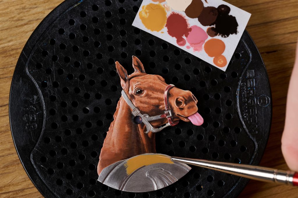 ภายใต้ภาพเชิงสัญลักษณ์ของม้าแห่ง Hermès นาฬิกาข้อมืออีกหนึ่งรุ่นจากเฮาส์ยังได้ถ่ายทอดถึงการตีความใหม่ในสไตล์ของม้าที่เต็มไปด้วยสีสัน และได้ต้นแบบแห่งจินตนาการมาจากผลงานของนักออกแบบ Dimitri Rybaltchenko รวมถึงถ่ายทอดผ่านแนวคิดสร้างสรรค์ราวดั่งฝัน สะท้อนถึงธีมประจำปีนี้ของแบรนด์ที่ว่า Drawn to Craft เพื่อเชื้อเชิญให้เปิดกว้างสู่การเดินทางและค้นพบกับความมหัศจรรย์ครั้งใหม่ๆ อย่างในนาฬิกาข้อมือรุ่น Slim d’Hermès Cheval brossé ที่บนหน้าปัดตกแต่งด้วยภาพของม้าผงาดจากเทคนิคงานแกะสลักบนฐานเพื่อสลักร่องลายที่เรียกกันว่า cliché หรือแผ่นพิมพ์ภาพ พร้อมทั้งการพิมพ์แพดสีสันสดใสเหนือท้องฟ้าอีนาเมลสีฟ้าน้ำเงิน ที่ดูคล้ายกับภาพจินตนาการซึ่งล่องลอยอยู่ระหว่างความฝันและความจริง