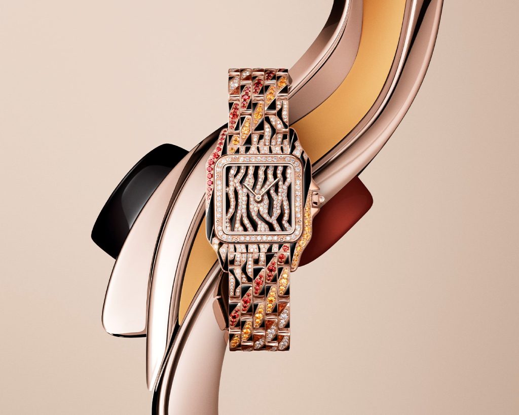 นอกจากนี้ยังมีผลงานรุ่น Panthère de Cartier ที่ตีความเสือแพนเตอร์ให้โลดแล่นและมีมิติยิ่งขึ้นกับตัวเรือนและสายลวดลายแอ็บสแทรกต์ผ่านเส้นสายลายพาดกลอนของเสือโคร่งเข้ากับลวดลายอันโดดเด่นของม้าลายที่กลายเป็นภาพกราฟิกอันสง่างาม โดยอาศัยทั้งศิลปะการตกแต่งแล็กเกอร์สีดำและน้ำตาลทองสลับกับการฝังเพชรและสเปสซาร์ไทต์สีส้มและสเหลืองระยิบระยับ ซึ่งต้องใช้ความเชี่ยวชาญเฉพาะของช่างฝีมือ ส่วนหน้าปัดประดับเพชรแบบ snow-setting งดงามไร้ที่ติ ทั้งหมดนี้ล้วนเป็นมรดกเชิงศิลป์และงานฝีมือที่สืบทอดมาอย่างยาวนานและยังคงพัฒนาไปสู่การสร้างสรรค์รูปแบบแห่งงานหัตถศิลป์ใหม่ๆ อย่างต่อเนื่อง
