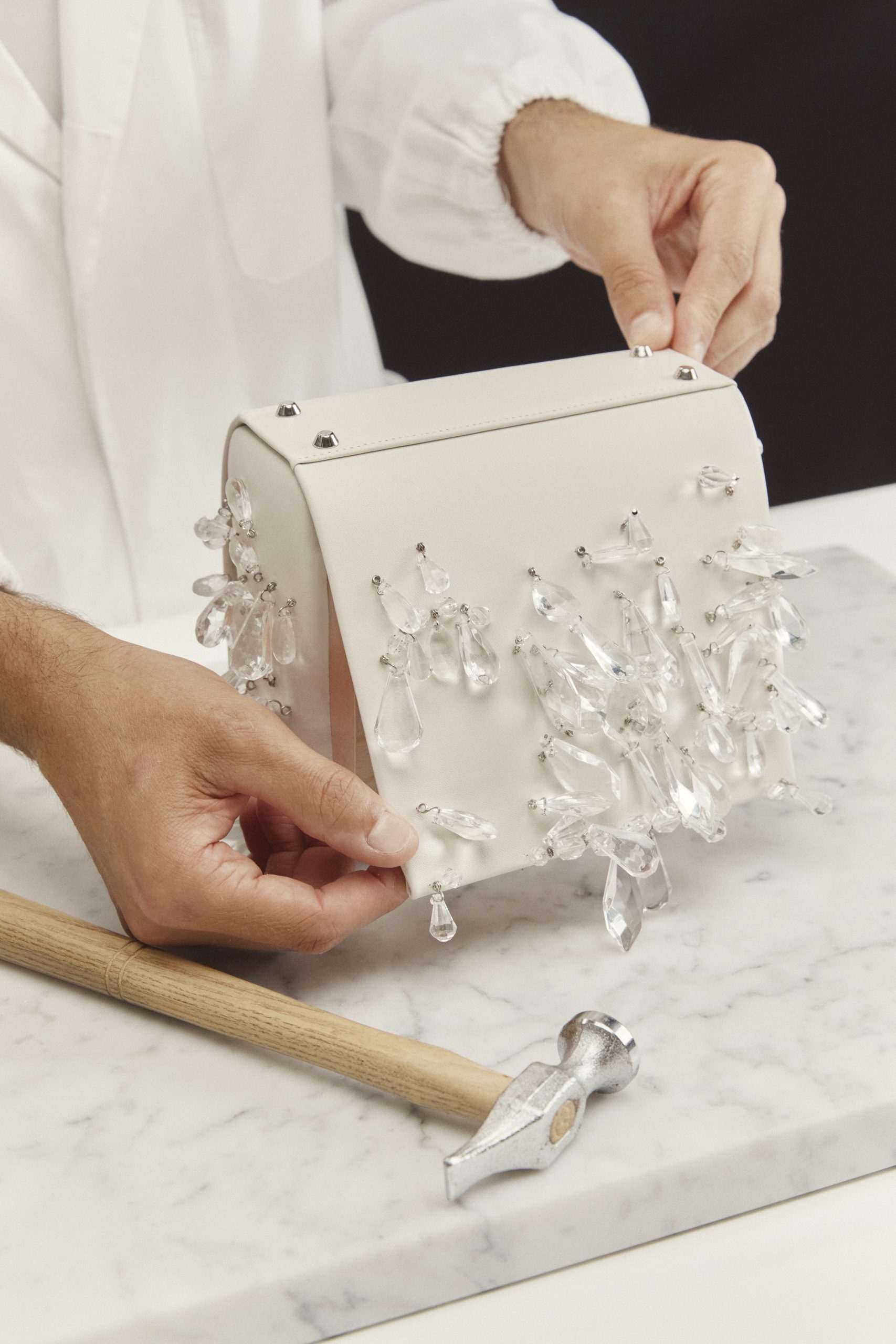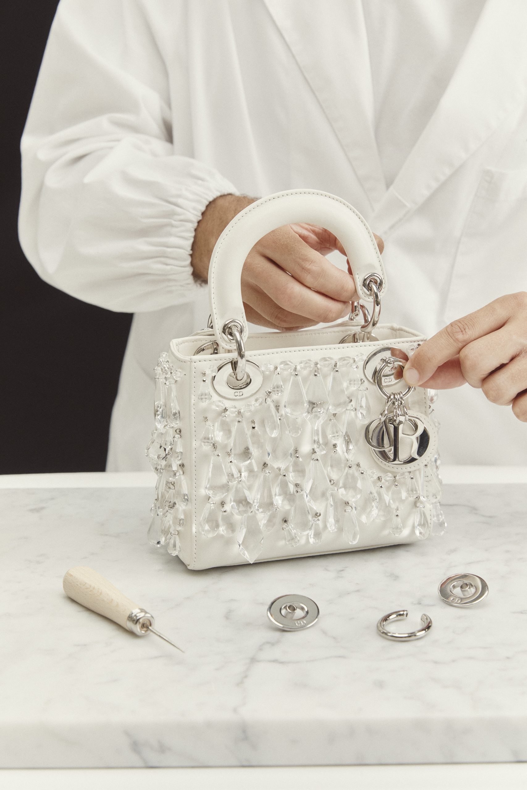 เพียงยลโฉมก็สามารถสัมผัสได้ว่าผลงานชิ้นนี้ต้องอาศัยความแม่นยำเป็นอย่างยิ่ง ผ่านฝีมือของช่างศิลป์ผู้เปี่ยมด้วยความเชี่ยวชาญ ไม่ว่าจะเป็นการตัดชิ้นส่วนต่างๆ การประกอบ การสร้างสรรค์หูหิ้วสุดไอคอนิก ตลอดจนการวางหยดโปร่งแสงแต่ละหยดซึ่งเป็นเสน่ห์อันเป็นเอกลักษณ์ ปิดท้ายด้วยจี้โลหะตัวอักษร ‘D, I, O, R’ ที่แต่งแต้มให้กระเป๋ารุ่นนี้ทั้งงามสง่า และยังเสมือนการผสมผสานระหว่างบทกวีและความเชี่ยวชาญ สะท้อนมรดกและงานฝีมืออันเป็นสิ่งที่แบรนด์แห่งนี้หลงใหลและขับเคลื่อน Dior เสมอมา