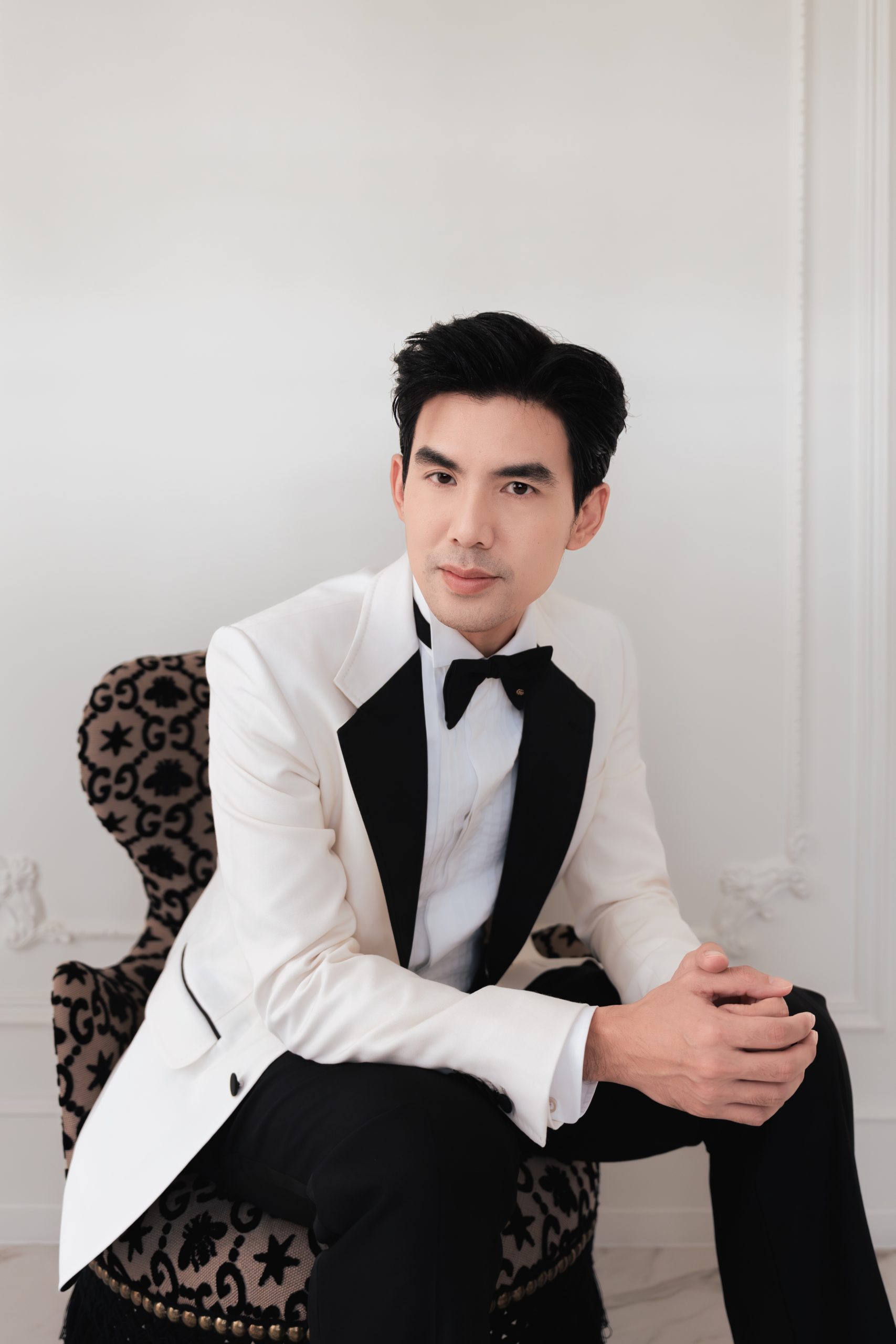 ขณะที่เจ้าบ่าว เต๋อ ฉันทวิชช์ โดดเด่นด้วยชุดจาก Gucci ที่รังสรรค์โดยช่างตัดเย็บที่เปี่ยมไปด้วยทักษะและความเชี่ยวชาญในบริการพิเศษ Made To Order ซึ่งให้บริการ ณ ร้าน Gucci ศูนย์การค้าสยามพารากอน ทุกขั้นตอนสะท้อนให้เห็นถึงความพิถีพิถันและเรียบหรูในแบบฉบับของ Gucci รวมถึงการถ่ายทอดเอกลักษณ์เฉพาะตัวของ เต๋อ ฉันทวิชช์ ให้ได้มากที่สุด จนกลายเป็นสูททักซิโดโทนสีไอวอรี่ ผ้าวูลบาราเธีย 100% ลายทอไขว้ แบบ broken twill พร้อมปกแหลมผ้ากรอสเกรนสีดำ จับคู่กับกางเกงทรงตรงคลาสสิก เสื้อเชิ้ตบริเวญด้านในดีไซน์ด้านหน้าด้วยเส้นตรงแบบจีบซ้อน และด้านหลังแบบ Uni-Yoke และกระดุมข้อมือโลโก้ Gucci ที่สามารถปักชื่อได้ คอมพลีตลุคด้วยรองเท้า Horsebit Loafer สีดำ และโบว์ไทผ้ากรอสเกรน