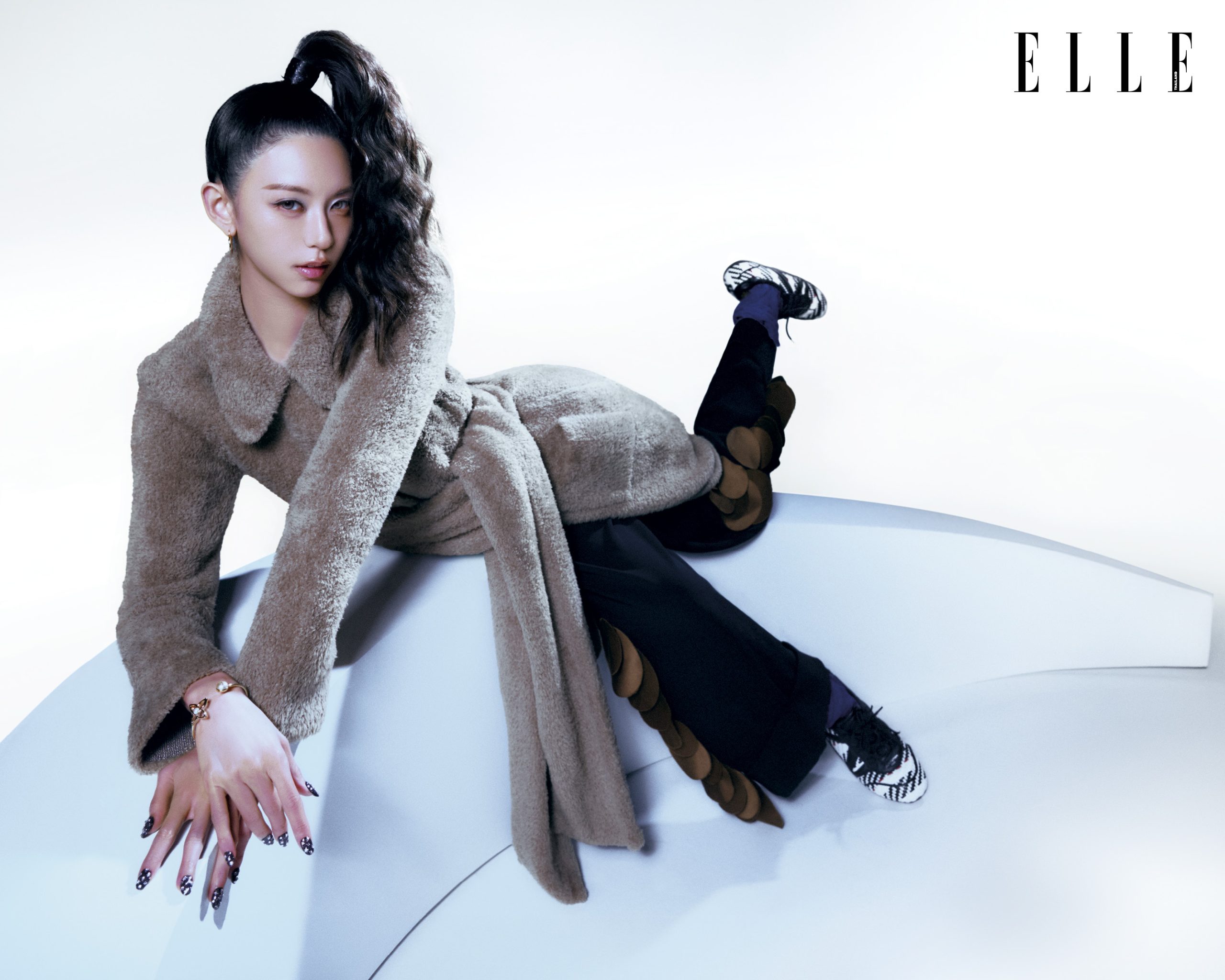 Ninna : ไม่อยากจะเชื่อเลยค่ะ โทร. หาหม่าม้าคนแรกเลยบอกว่าหนึ่งในเป้าหมายของชีวิตนั้นคอมพลีตแล้ว ดีใจมากๆ เลย ขอบคุณทางELLE มากๆ ที่เล็งเห็นนินน่าคนนี้ (อมยิ้ม) จนวันนี้ที่มาถ่ายก็ยังรู้สึกไม่เชื่อนะคะ ตอนมาถึงกองยังคิดว่าอันนี้ถ่ายเพื่อขึ้นปกจริงๆ ใช่ไหม? สิ่งที่ต้องเตรียมเลยคือทางด้านจิตใจค่ะ เตรียมให้เหมาะกับแบรนด์ที่เขาเลือกเรา