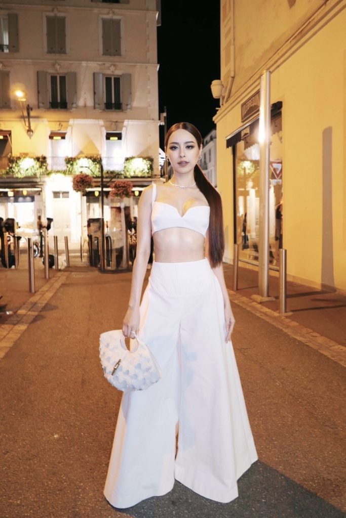 ตามมาด้วยนักแสดงสาวดาวรุ่งอย่าง พีพี ปุญญ์ปรีดี ที่ประเดิมปีแรกในเทศกาลภาพยนตร์เมืองคานส์พร้อมร่วมงานปาร์ตี้สวยลุคสวยแกลมแฝงความเซ็กซี่เบาๆ ลุคคร็อบท็อปที่จับคู่กับกางเกงขากว้างผ้าคอตตอนเดนิม ให้กลิ่นอายของบ้านเมืองริมหาด และเสริมมิกกิมด้วยกระเป๋าทรง Trapeze โทนสีขาวจากคอลเล็กชั่น Spring/Summer 2025 ซึ่งรังสรรค์จากวัสดุหนังลูกวัวที่เพิ่มดีเทลคัตติ้งชิ้นหนังรูปทรงฟรีฟอร์มวางเรียงชิ้นทั่วทั้งใบ โดยมีการตกแต่งด้วยอะไหล่บัคเกิลทรงสี่เหลี่ยมผืนผ้า ซึ่งนำหัวเข็มร้อยด้ายอันเป็นจุดเริ่มต้นแห่งการสรรสร้างมาเป็นแรงบันดาลใจสำคัญ