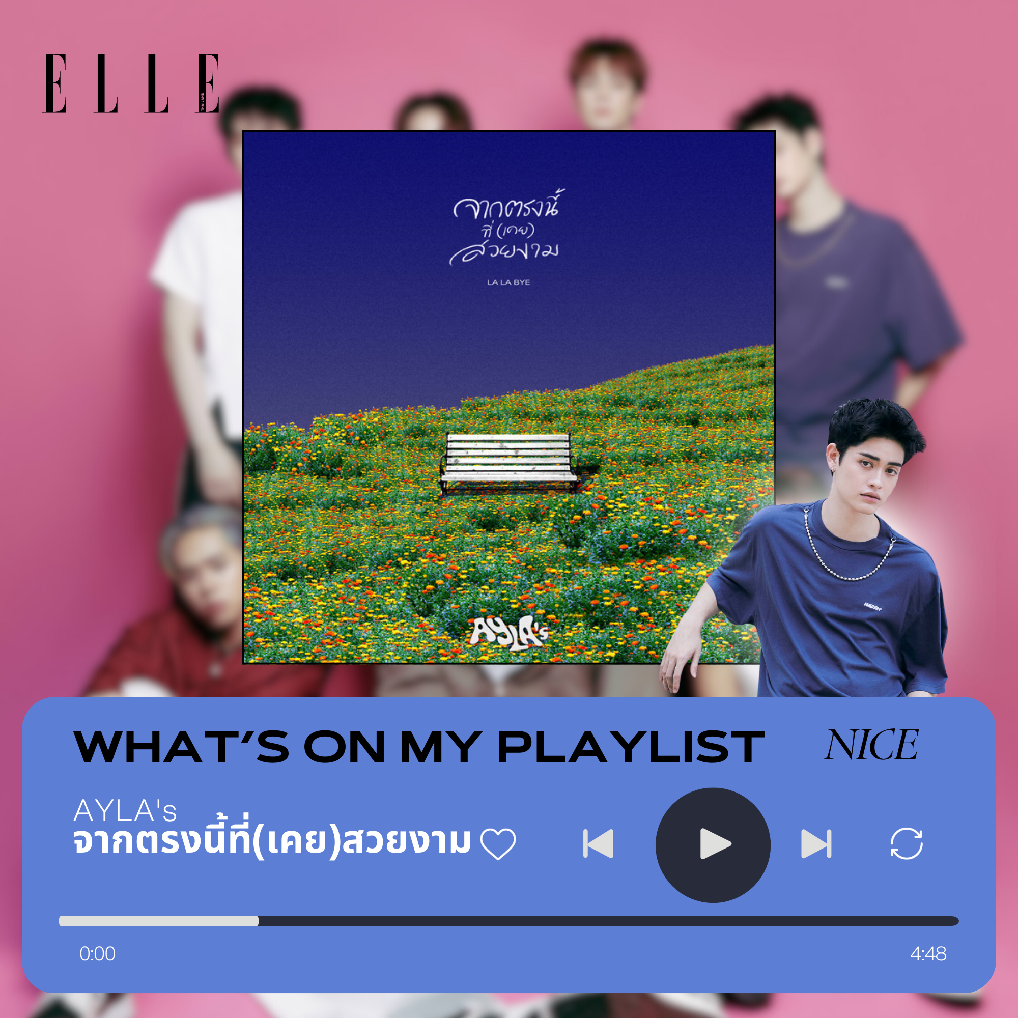 NICE: จริงๆ ฟังเยอะมากครับ แต่ถ้าช่วงไหนฟังติดเพลงไหนก็จะฟังเพลงเดียววนไปเลยทั้งอาทิตย์ ซึ่งตอนนี้ฟังเพลง จากตรงนี้ที่(เคย)สวยงาม ของ AYLA’s ปกติผมจะเลือกฟังเพลงที่ตรงกับอารมณ์ ซึ่งช่วงตอนนี้ติดฟังเพลงเศร้าและชอบเพลงนี้มาก เพิ่งมีโอกาสได้รู้จักวงนี้และไปตามฟังเพลงอื่นๆ ของเขาและชอบทุกเพลง แต่เพลงนี้ยกให้เป็นที่หนึ่งเลย ก็เป็นเวลาเกือบสองอาทิตย์ได้ที่พี่ภูมินั่งรถผมแล้วก็ได้ฟังแต่เพลงเดิมจนบอก “จะไม่ฟังเพลงอื่นเลยเหรอ?” ผมรู้สึกว่ามันเศร้าดี จบแล้วรู้สึกอยากฟังอีก ผมชอบคำ ชอบเมโลดี้ ชอบความรู้สึกที่เขาถ่ายทอดมา แล้วมันติดอยู่ในหัวตลอดเวลา รู้สึกถึงใจดีครับ