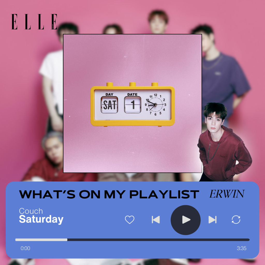 ERWIN: ช่วงนี้ชอบฟังเพลง Saturday ของ Couch ครับ ช่วงนี้ชอบเพลงฟีลกู๊ด สนุก แฮปปี้ อะไรแบบนี้ครับ ซึ่งเพลงนี้มีไวบ์ความกรูฟังก์ และมีกรูฟที่ดี เนื้อหาก็ดีครับ ผมเลยชอบ ปกติจะฟังเวลาตื่นนอน บูสต์เอเนอร์จีตอนเช้า ผมว่าถ้าใครได้ฟังก็จะชอบ เป็นเพลงที่พูดเกี่ยวกับชีวิตนี่แหละครับ ฟีลกู๊ด เกี่ยวกับชีวิตของฉันแต่ละวัน มีเรื่องราวความรักผสมด้วย ผมชอบดนตรีเป็นองค์ประกอบหลักอยู่แล้ว