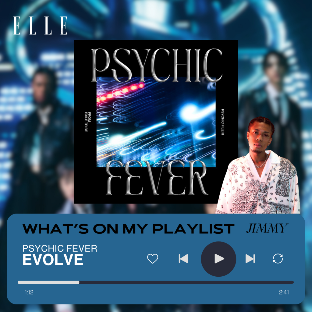 JIMMY: ผมชอบเพลง ‘EVOLVE’ ของ PSYCHIC FEVER จริงๆ แล้วนี่เป็นเพลงจาก EP ใหม่ของพวกเรา เสียงของสมาชิกแต่ละคนมีเอกลักษณ์มาก และคิดว่านี่เป็นเพลงที่ทุกคนน่าจะเพลิดเพลินได้มากที่สุดในตอนนี้เลยครับ